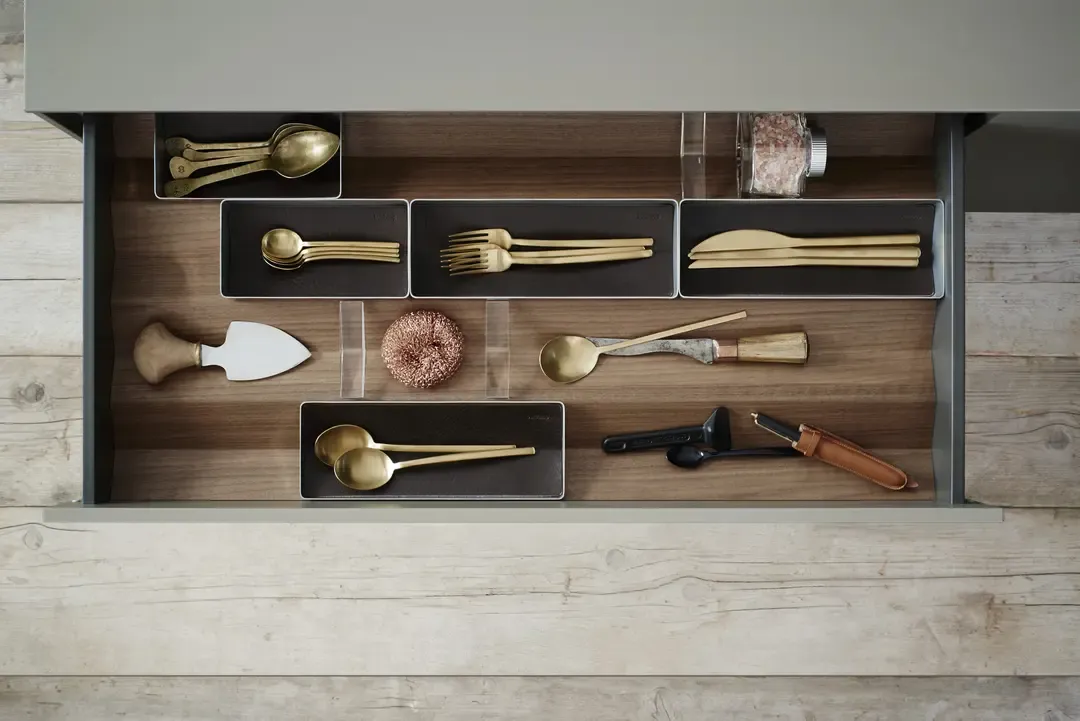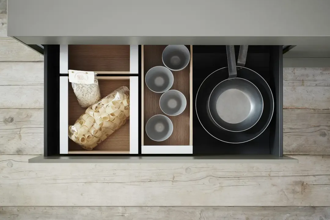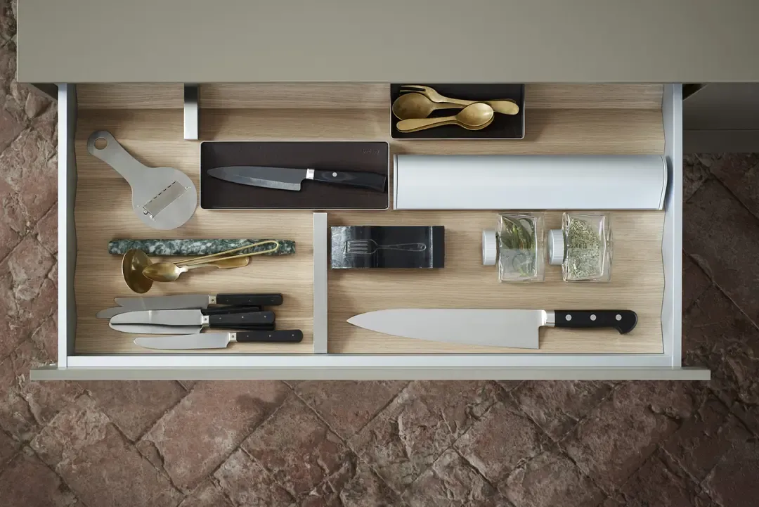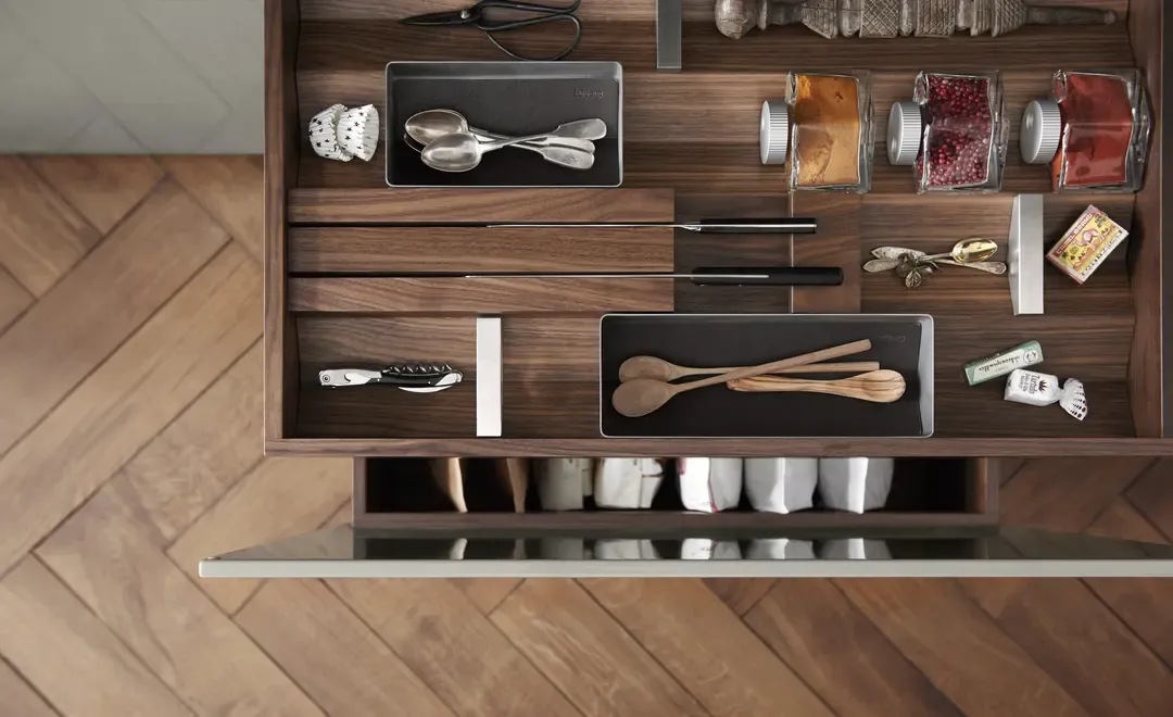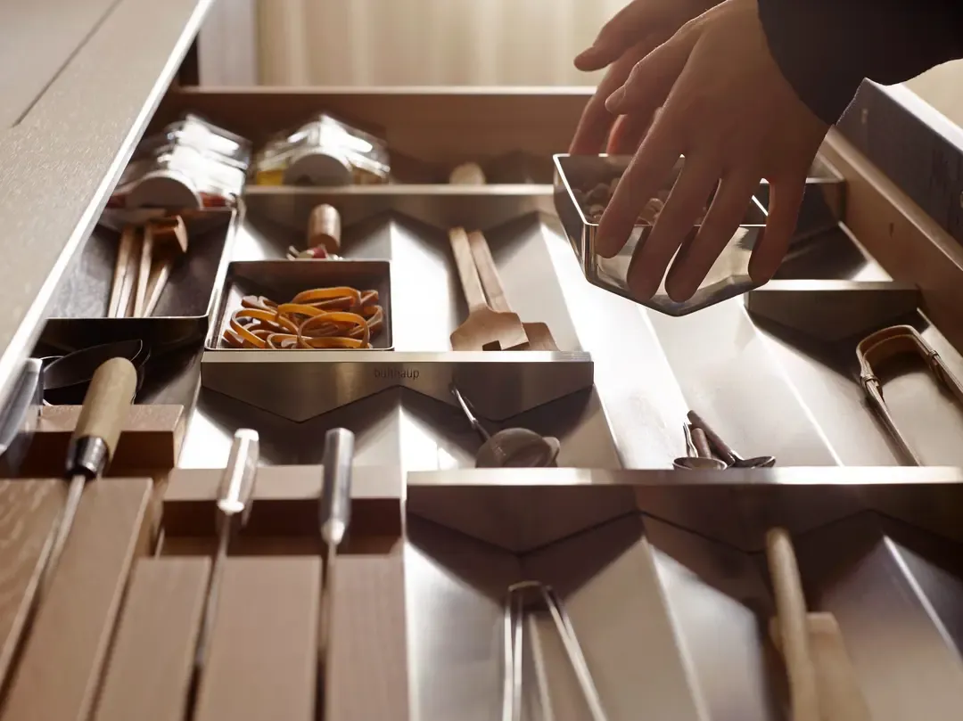 A bulthaup b3 rendszer a konyhai ergonómia és esztétika kifinomult egyensúlyát képviseli. A falra függesztett, lebegő hatású megoldások és a rejtett tárolóelemek a tér vizuális tisztaságát szolgálják, miközben minden mozdulat logikusan követi a főzési folyamatot. A b3 rakodási rendszere nemcsak rendet teremt, hanem intuitív hozzáférést biztosít – a funkcionalitás a design szerves részeként jelenik meg.