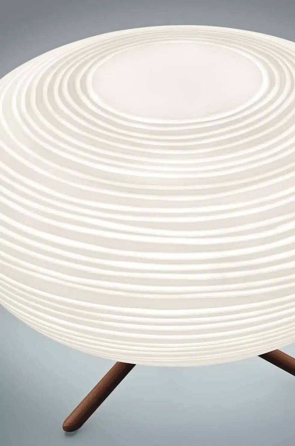 A Foscarini Rituals 2 Table Lamp finom, kézzel fújt üvegfelületeivel a fényt lágyan szórja, meghitt, harmonikus atmoszférát teremtve. A fehér üveg búra és a bronz talp elegáns kontrasztja időtlen megjelenést ad. Mérete Ø 34 × H 25 cm,