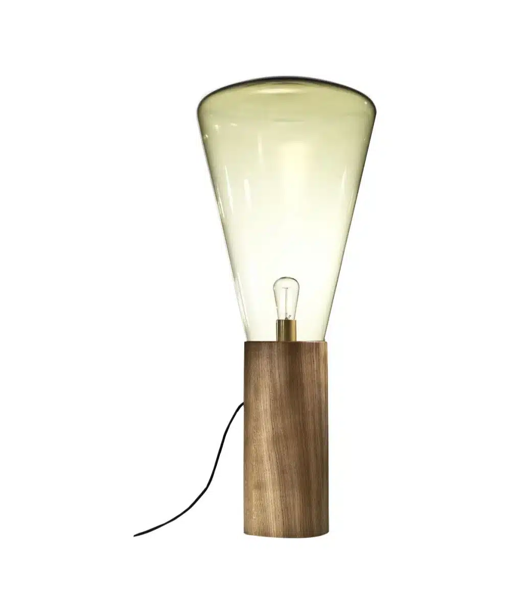 A Brokis Muffins Wood 04 Floor Lamp a márka ikonikus Muffins kollekciójának elegáns, állólámpa változata. A füstszínű, kézzel fújt üveg búra és a diófa talp harmonikus kontrasztja természetes melegséget és vizuális könnyedséget ad a térnek.