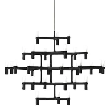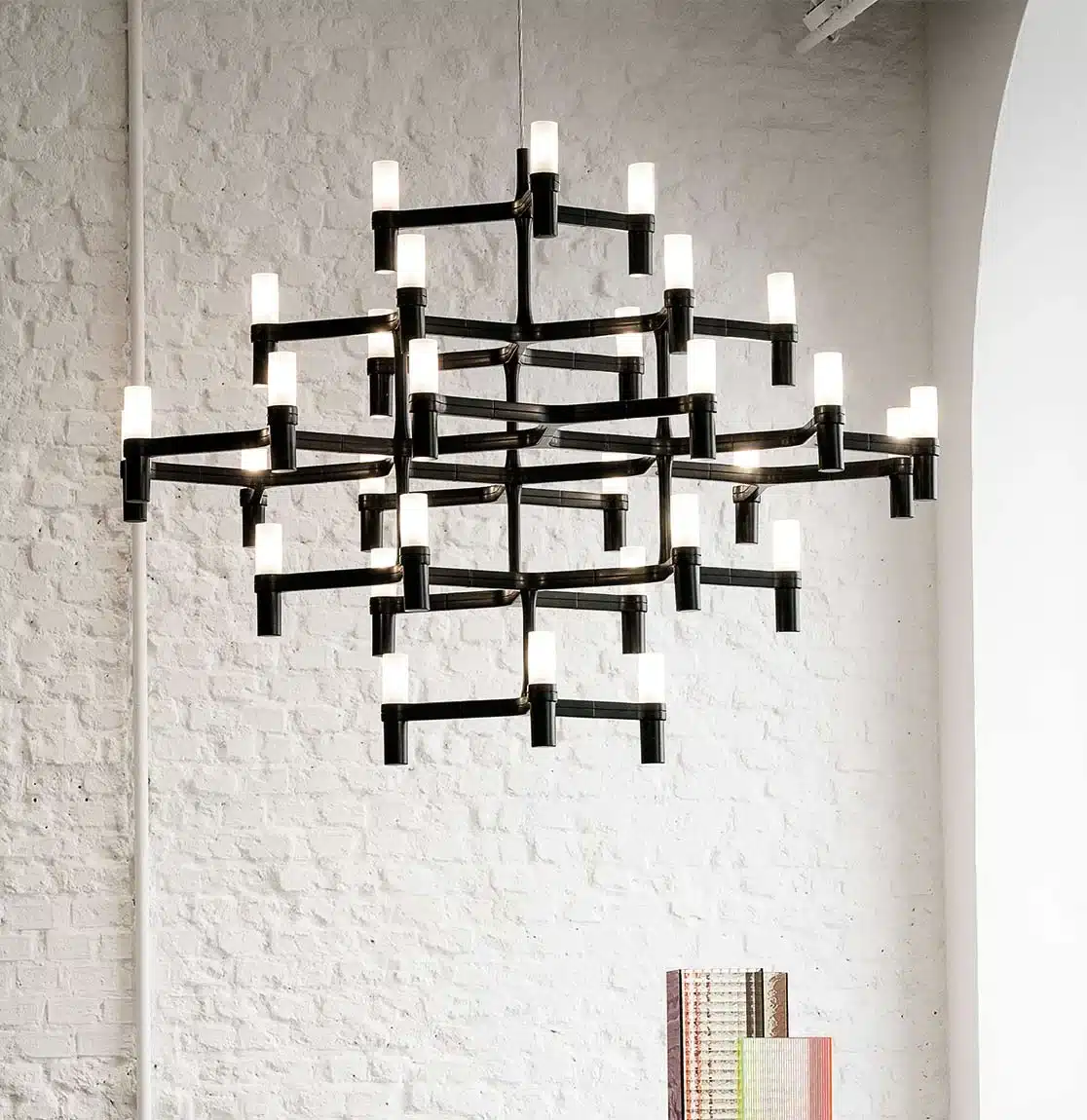 A Nemo Crow Major Ceiling Lamp a térbe rajzolt fény vonalait testesíti meg. A fekete színű karcsú szerkezet grafikus eleganciát kölcsönöz, miközben a fény iránya szabadon formálható. Mérete 109 × 113 cm,