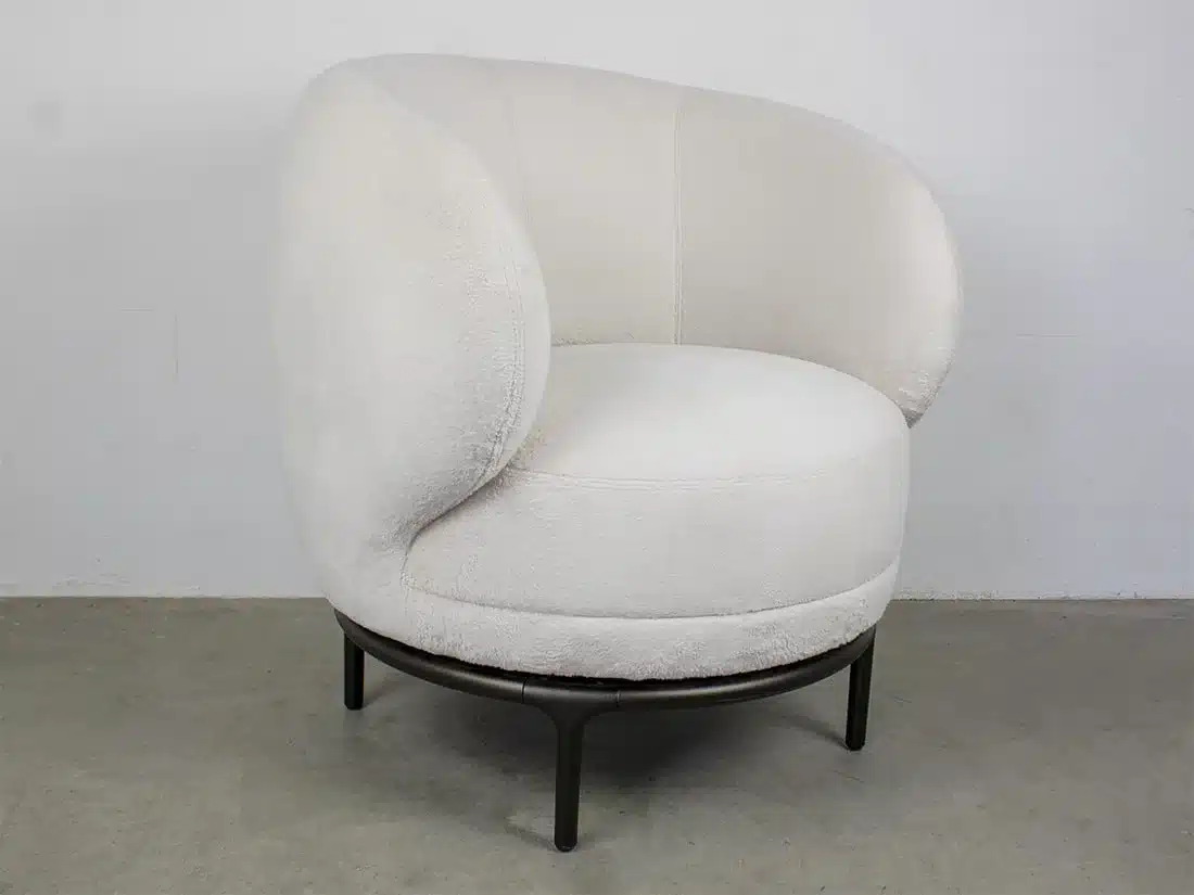 A Wittmann Vuelta Armchair a kollekció esszenciáját sűríti egyetlen karosszék formájába. A Now2 kivitel F3 kategóriás Yukon Snow textillel és Black Grey lábszerkezettel készül. Mérete 80 × 83 × H 77 cm, formája zárt és ívelt, amely körülöleli a testet, miközben diszkréten elegáns megjelenést ad a térnek.