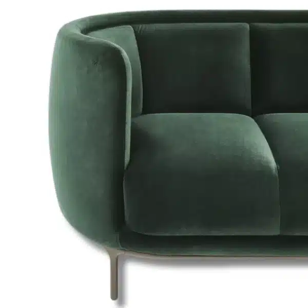 A Wittmann Vuelta Sofa a kollekció egyik legkarakteresebb darabja. A Now3 kivitel E kategóriás Velvet Verde textillel készül, mérete 197 × 83 × H 77 cm. Jellegzetes ívelt háttámlája és kézzel formált kárpitozása otthonos, mégis reprezentatív megjelenést ad bármely térnek.